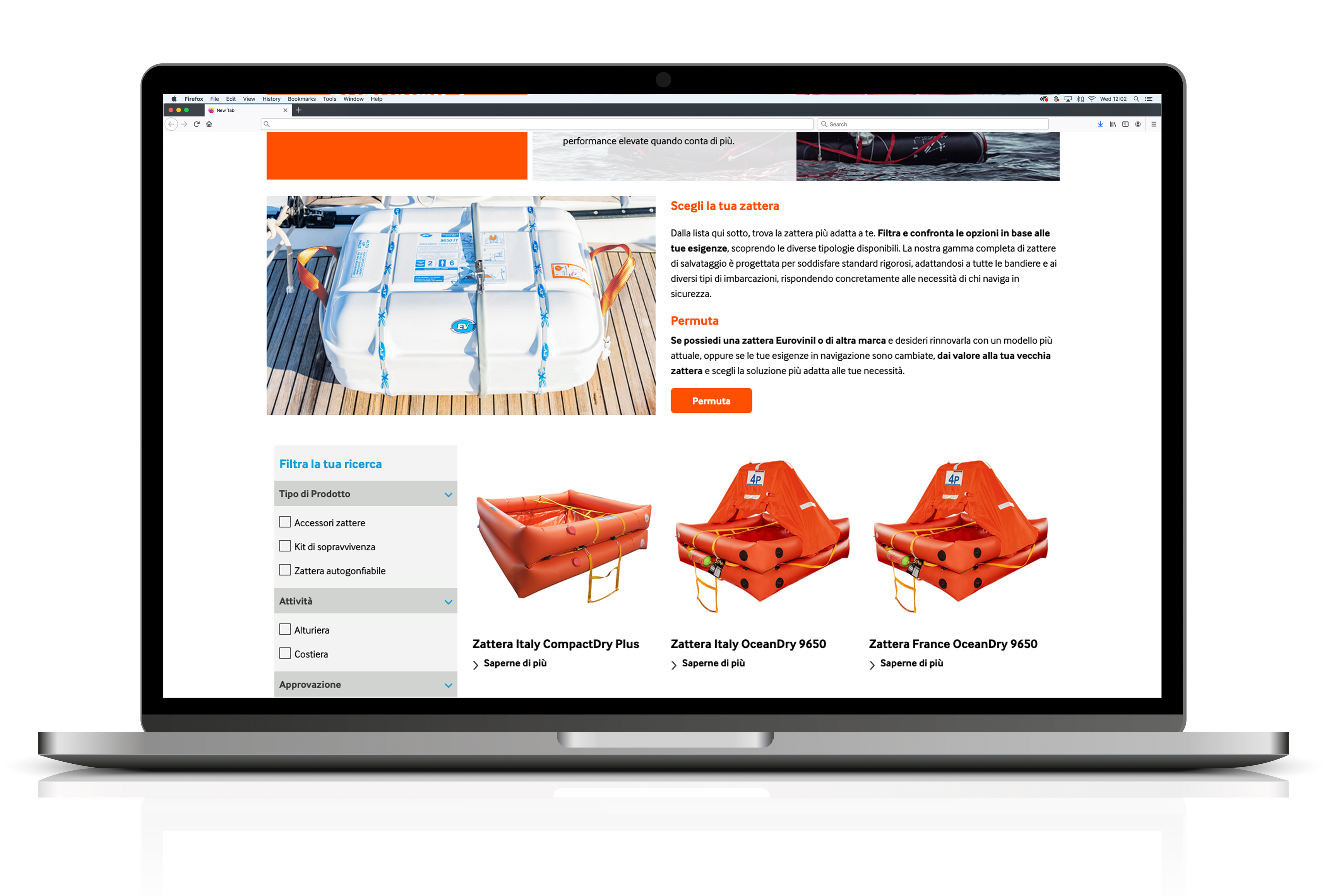 bd2 worked closely with both the Survitec and Eurovinil teams to coordinate translations, ensuring technical accuracy and consistency of tone across each language variant. The result is a site that works effectively for its core Italian audience while remaining clear and accessible for international users.