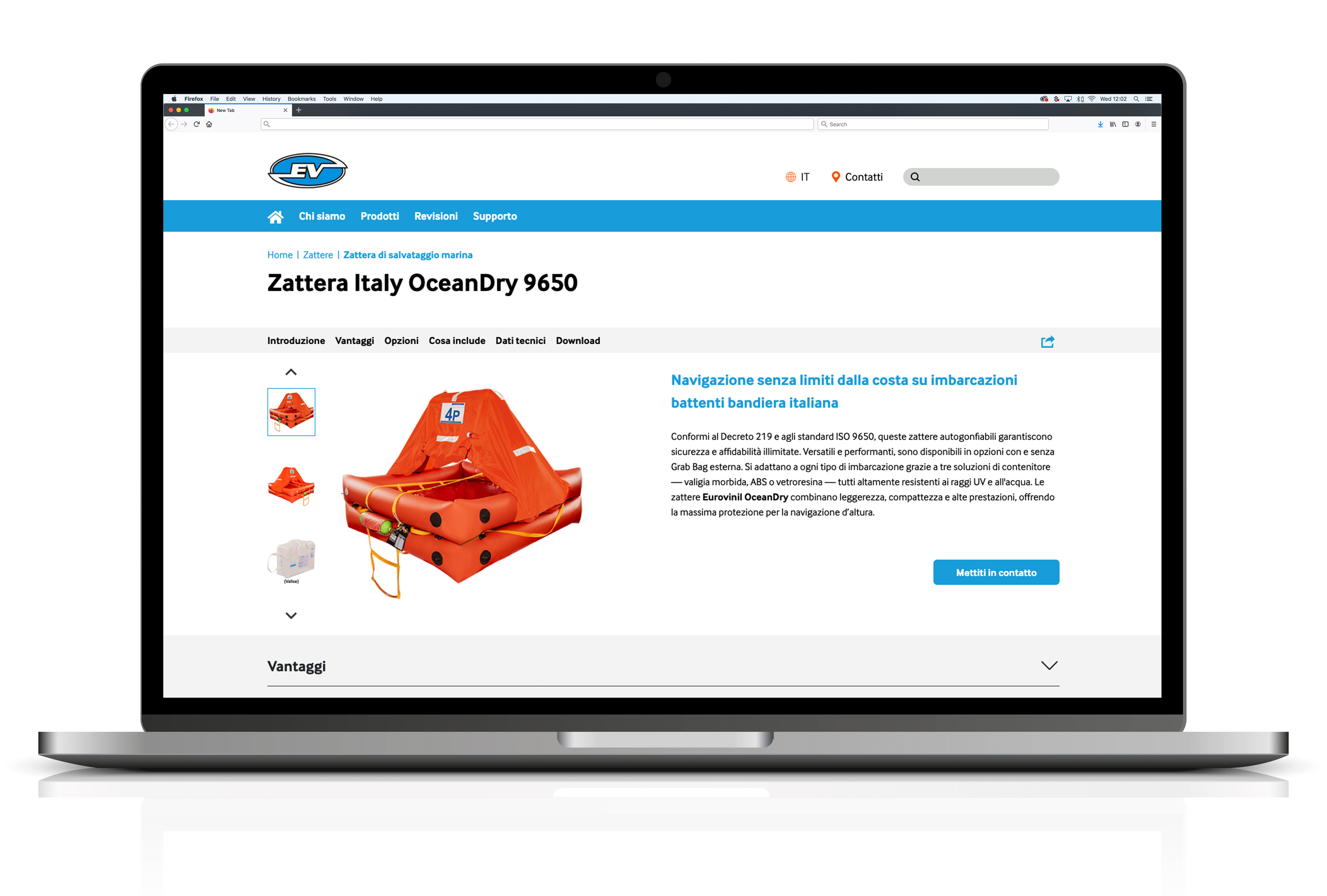 Eurovinil, an Italian manufacturer specialising in inflatable safety equipment for the marine sector, forms part of the wider Survitec portfolio, and while the brands operate independently, they benefit from shared systems and technical alignment. Bringing Eurovinil onto the aligned platform supports both the brand’s primary Italian market and its wider international audience.